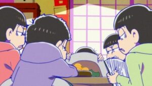 Sinopse: Osomatsu-san é uma série que segue os seis irmãos gêmeos Matsuno, com Osomatsu liderando por ser o mais velho do grupo. A série é conhecida por seus momentos nonsense e paródias da cultura japonesa, além de ocasionalmente satirizar o próprio universo dos animes.